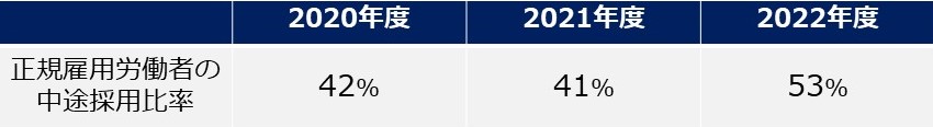 労働施策総合推進法に基づき、当社の直近3事業年度の中途採用比率を以下のとおり公表します。