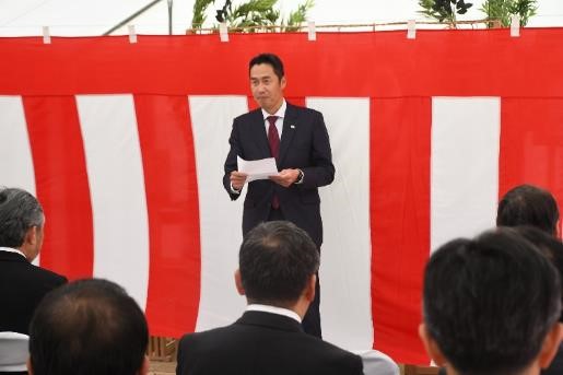 「リックス協創センターは、※”協創”を推進する場として建設を決めました。当社の中長期経営計画の中でも最も重要な施設になります。工事も”協創”の一つだと思います。完成まで安全第一でどうぞよろしくお願いします」