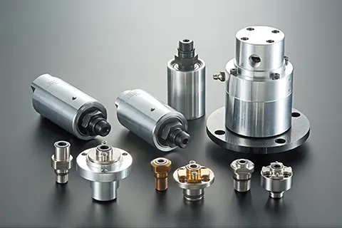 Our rotary joints can be used for machine tool rotary tables, lathe chuck seating detection, industrial robots, and other line automation applications. We can also provide a rotary joint with a built-in slip ring.
