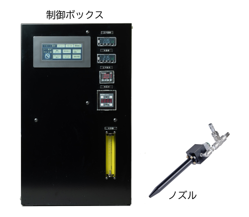 警報、ポンプ、装置側とのI/Oが無いので、生産設備には使用できませんが、試験用途に御使用できます。ポンプが無いので、給水ラインが必要です。ノズル部は同じです。