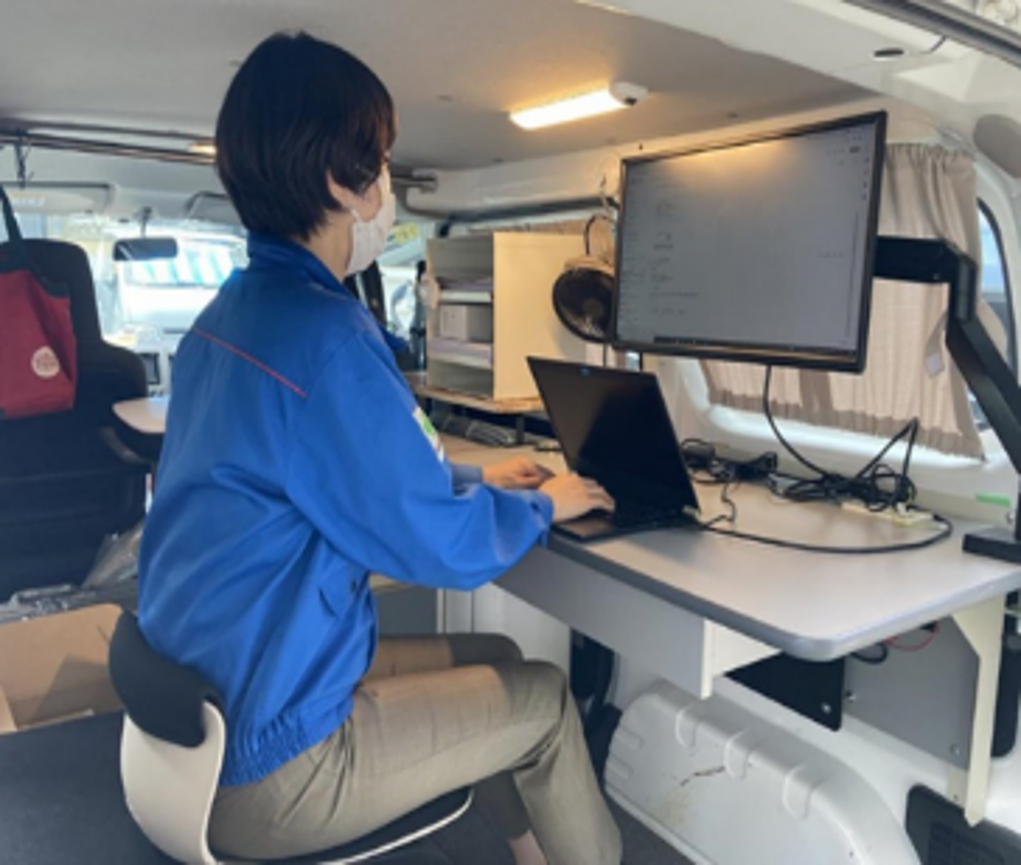 【ライフ・ワーク・バランス】オフィスカー導入の実証試験 2022/06/08 社会 オフィスカー導入の実証試験を行っています(2021年4月~)。営業所での事務作業を車内で完結できる環境を作ることで、自宅や拠点と顧客間の移動時間の効率化を図ります。営業生産性を落とさずに、効率化により生まれた時間はプライベートの充実に活かすことで、ライフ・ワーク・バランスの向上を図ります。詳細はこちら 取組事例一覧へ戻る