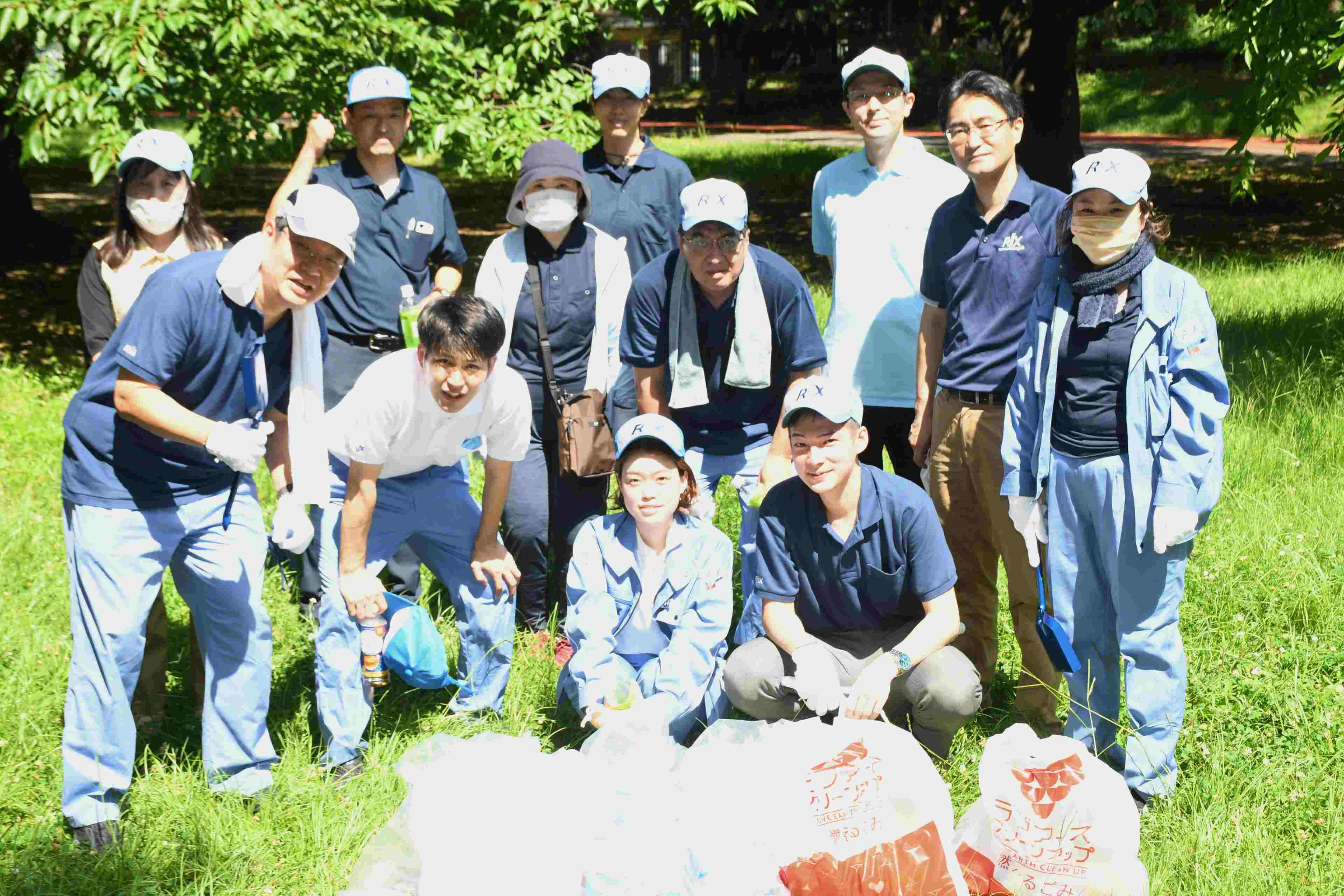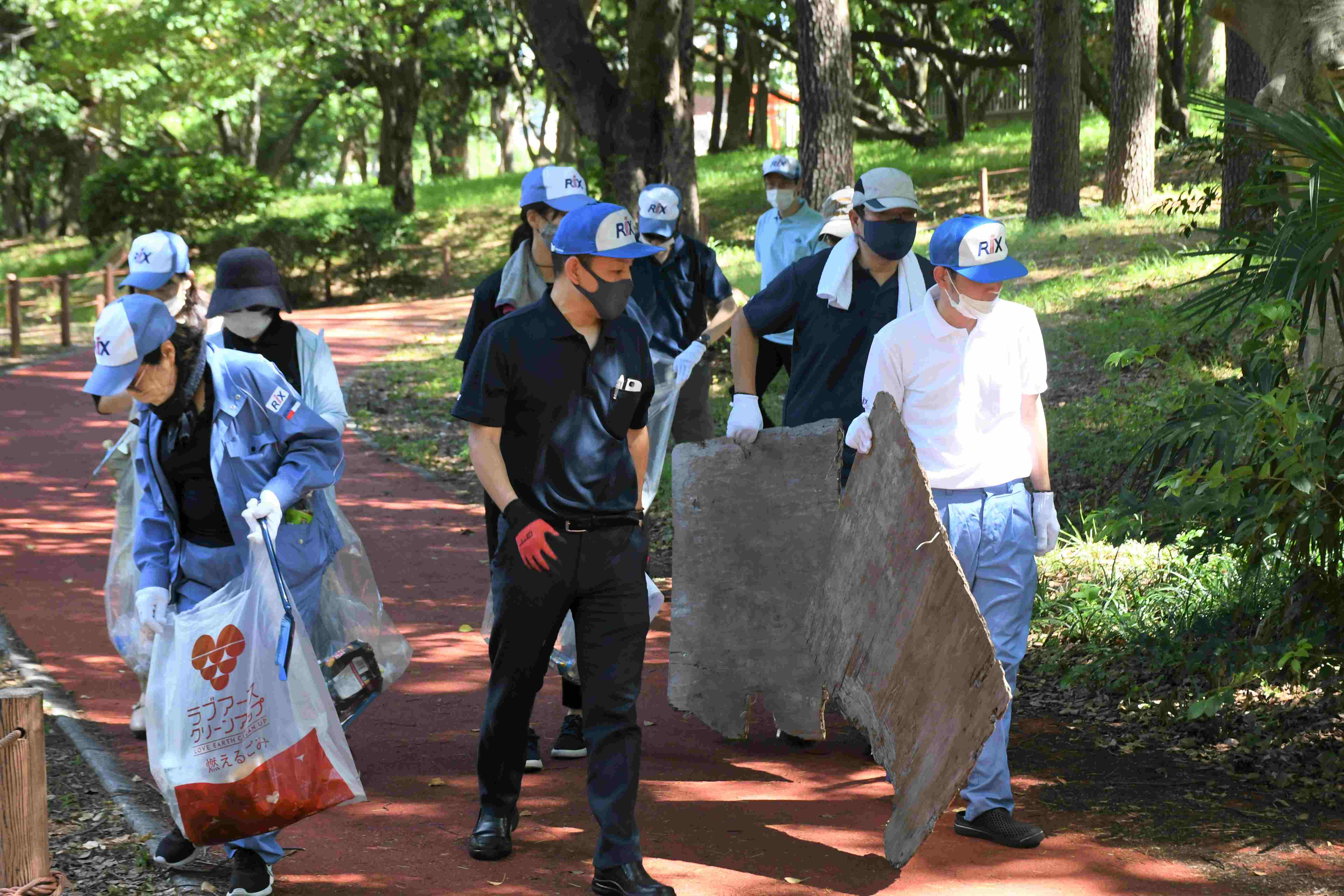 当日は、当社従業員14人が参加し、約1時間かけて園内に落ちていた空き缶やたばこの吸い殻、プラスチックごみ、板などを拾いました。